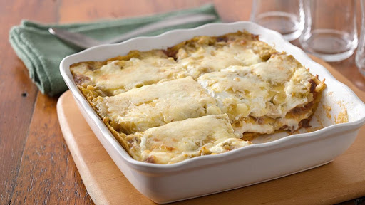 Layer four tortillas in the bottom of a casserole dish. Add half of pork mixture; then add the corn mixture.