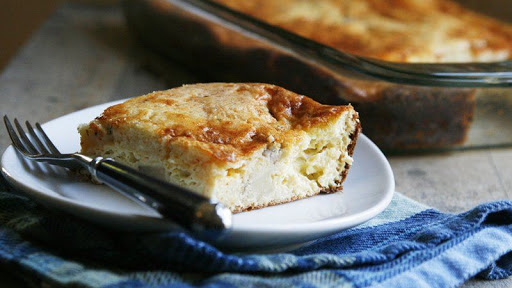Bake uncovered about 1 hour or until toothpick inserted in center of egg bake comes out clean. Cut into squares, and enjoy.