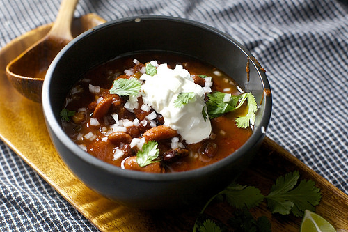 Heat oil in the bottom of a medium-sized heavy pot or Dutch oven (if finishing it on the stove), in the pot of your pressure-cooker (if using one) or in a large skillet (if finishing in a slow-cooker). Once warm, add onion and cook for 5 minutes, until translucent. Add any fresh peppers and cook for 3 more minutes. Add garlic, chili powder, cumin, oregano and salt and cook for 2 minutes, until browned and deeply fragrant. Add beer and scrape up any bits stuck to the pot. Boil until reduced by half, or, if you’re nervous about alcohol content, until it has all but disappeared.