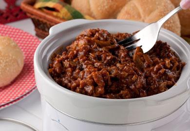 Combine reserved 1 cup sauce, ketchup, butter, and shredded meat in slow cooker; cook on HIGH setting until thoroughly heated, stirring often. Spoon meat mixture onto buns.