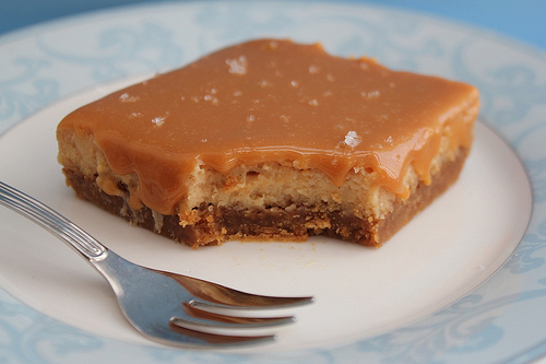 4. Lastly - (and this is the best part!) when you're ready to serve the bars sprinkle the caramel glaze lightly with some fleur de sel.