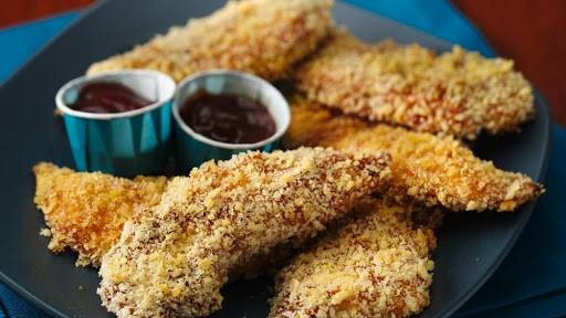 Bake 15 to 20 minutes, turning once, until chicken is no longer pink in center and bread crumbs are golden brown. Serve with additional barbecue sauce.
