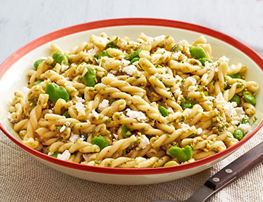 Fava-Bean Pasta Salad with Garlic-Scape Pesto
