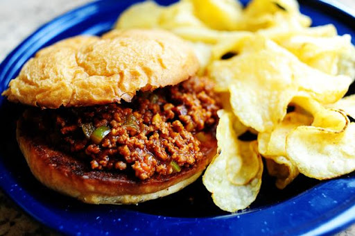 Spread rolls with butter and brown on a griddle or skillet. Spoon meat mixture over the rolls, topping with a slice of cheese if it makes your skirt fly up. Serve hot with kettle cooked chips!