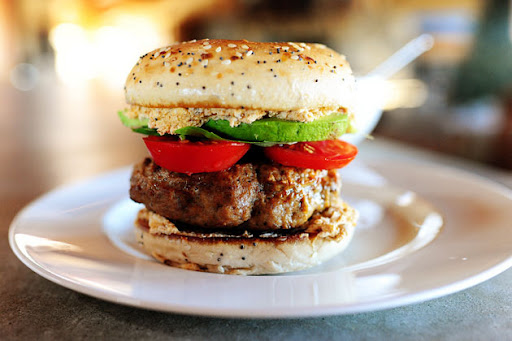To serve, spread a good amount of the pesto spread on each bagel half. Place the burgers on the bottom half, then top with tomato slices and basil leaves. Lay avocado slices on the top half, using the spread to make them stay put. Sprinkle a little salt and pepper on the avocados, then place the top half on the bottom half, smush it together...and dig in!