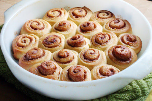 Preheat over to 350 degrees F. Separate rolls into rectangles, press perforations. Spread with margarine. Combine sugar, cinnamon and raisins. Sprinkle mixture over rectangles. Roll up each rectangle from short end. Cut each roll into 5 slices. Place slices cut side down in ungreased Deep Dish Baker. Bake for 20-25 minutes or until golden brown. Mix glaze. Drizzle on top of warm rolls.