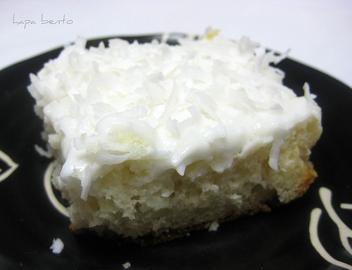 Use 1 box for white cake. Follow instructions and add 1/4 teaspoon coconut extract.