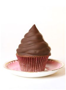 Transfer frosting to a large pastry bag fitted with a 1/2-inch plain pastry tip. Leaving a 1/8-inch border on each cupcake, pipe a spiral of frosting into a 2-inch-high cone shape, using about 1/2 cup of frosting per cupcake. Transfer cupcakes to a baking sheet, and refrigerate while preparing the chocolate coating.