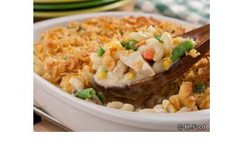In small bowl, combine cornflake crumbs and butter; mix well. Stir chicken mixture then sprinkle crumb topping evenly over top.