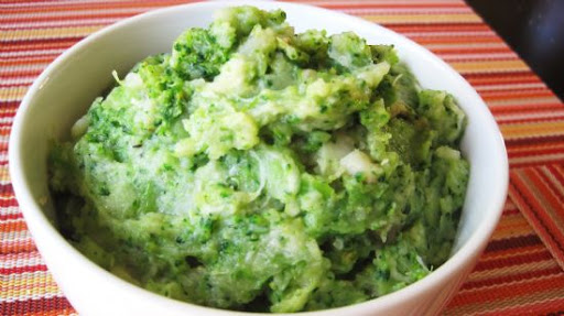 Place potatoes in large saucepan; add water to cover. Bring to a boil. Reduce heat and cover and simmer 10 minutes. Add broccoli and onion. Return to a boil; reduce heat and cover and simmer 10-12 minutes until vegetables are tender. Drain. In a large bowl with electric mixer, combine well drained vegetables and all remaining ingredients until smooth. 5 servings ½ c 70 calories