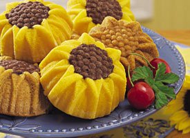 Bake 18 to 25 minutes or until toothpick inserted in center comes out clean. Cool 10 minutes. Remove cakes from pan to cooling rack, placing sunflower side up.