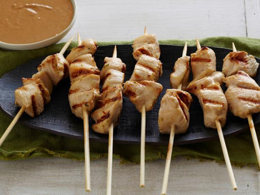 Yield: 4 servings (2 skewers and 2 tablespoons peanut sauce per serving)