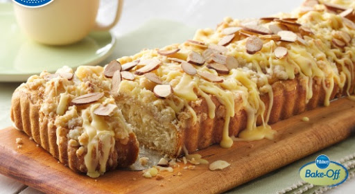 In medium bowl, mix flour and sugar. With pastry blender (or pulling 2 table knives through mixture in opposite directions), cut in almond paste and butter until mixture looks like fine crumbs. Sprinkle evenly over dough.