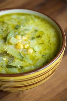 4.Bring the soup to a gentle boil , reduce the heat and cook until the corn and zucchini are soft but not mushy.