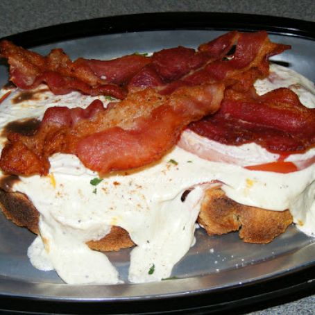 In the 1920's, the Brown Hotel in Louisville, KY drew over 1,200 guests each evening for its dinner dance. In the wee hours of the morning, the guests would grow tired of dancing and retire to the restaurant for a bite to eat. Diners were rapidly growing bored with the traditional ham and eggs, so Chef Fred Schmidt set out to create something new to tempt his guests' palates. His unique creation was an open-faced turkey sandwich with bacon, tomatoes, and a delicate Mornay sauce. The Hot Brown was born!!