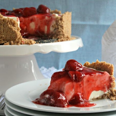 Light and creamy no-bake cheesecake topped with a luscious strawberry sauce. No gelatine required.