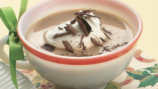 Serve in mugs; top with whipped cream and chocolate shavings..