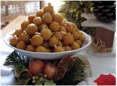 Struffoli or honey balls are a traditional dessert in Naples around Christmas. The dough balls are fried, sizzled with honey and sprinkles and then piled to form a cone or wreath. Serve them after Christmas dinner. Easy and yummy, and you can make them in advance.