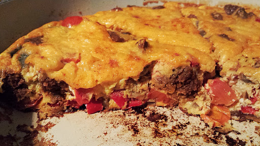 This frittata can be made with regular or vegetarian Chorizo. For this recipe, I used vegetarian Chorizo, and I topped it with a yogurt dip that had cilantro and chives in it (from Trader Joe's).