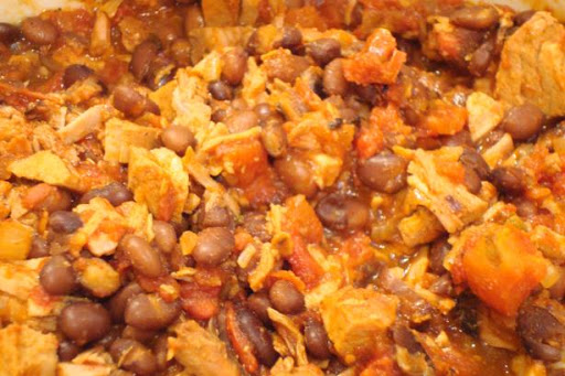 This recipe came out of a need to serve leftover pork tenderloin in a completely different way - my kids hate to eat leftovers of the "exact" same thing they ate the night before. I kept it pretty mild for tender palates, but you could certainly add any type of chiles, hot sauce, etc. Also, for the kids I put it into tortillas with cheese for burritos while my husband and I ate it in bowls as chili. The sky's the limit to the variations