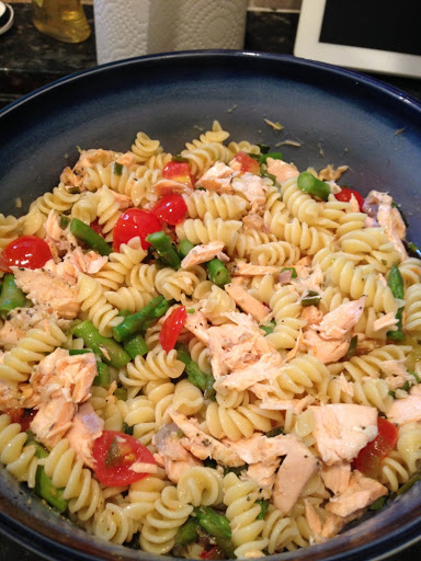 Rotini with Asparagus, Salmon & Cherry Tomatoes