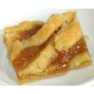 Roll remaining dough to a thickness of 1/4 inch. Cut into half-inch-wide strips. Weave strips into a lattice over peaches. Sprinkle with 1 tablespoon sugar, and drizzle with 1 tablespoon melted butter.