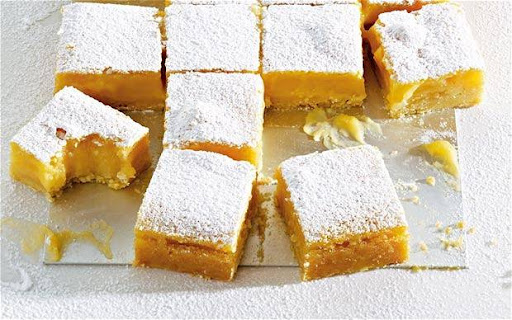 Stir together flour and powdered sugar. Blend in butter. Press into 9" square baking pan and bake 18-20 minutes at 350 degrees or until lightly browned. Beat eggs. Stir in sugar and lemon juice. Pour into baked pastry lined pan. Return to oven and bake 25-30 minutes. Chill. Make 16 squares.