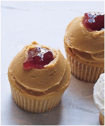 Make cupcakes as directed in Basic Cupcake How-To, adding peanut butter before adding eggs. Use sour cream and vanilla as wet ingredients. Once cupcakes are cool, frost tops with peanut butter frosting. Place a dollop of jam in center of frosting. Decorated cupcakes will keep, covered and refrigerated, for up to 2 days.