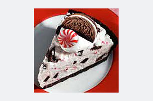 FREEZE 4 hours or until firm. Let stand 10 min. before serving. Cut reserved cookies in half. Top each slice of pie with 2 Tbsp. of the whipped topping, 1 cookie half and 1 mint just before serving. Store leftover pie in freezer.