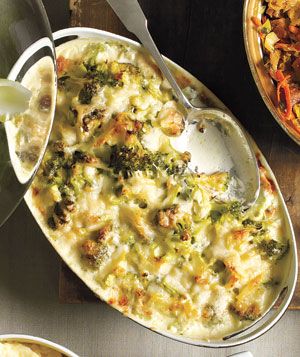3.Transfer the broccoli mixture to a shallow 3-quart baking dish and sprinkle with the remaining cup of cheese. Bake until bubbling and golden brown, 35 to 40 minutes. Let sit 10 minutes before serving.
