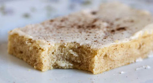 6.To make the frosting, beat the butter with the powdered sugar and vanilla until fluffy---about 10 minutes on high. Spread frosting over the cooled cake and cut into small squares.