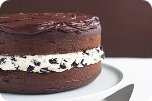 MEANWHILE, beat cream cheese and sugar in large bowl with mixer until blended. Gently stir in COOL WHIP and crushed cookies. Stack cake layers on plate, spreading cream cheese mixture between layers. Spread top with chocolate glaze; let stand until firm. Keep refrigerated.