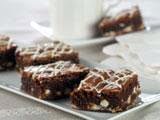 4. MICROWAVE remaining morsels in heavy-duty plastic bag on MEDIUM-HIGH (70%) power for 30 to 45 seconds; knead. If necessary, microwave at additional 10- to 15-second intervals, kneading until melted. Cut tiny corner from bag; squeeze to drizzle over brownies. Refrigerate for 5 minutes. Cut into squares.
