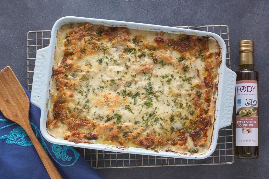 Chicken & Spinach Lasagna Bake with Four Cheeses, GF & Low FODMAP