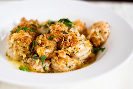 Butter, lemon, garlic, and a crunchy topping are an excellent twist on the classic shrimp scampi.