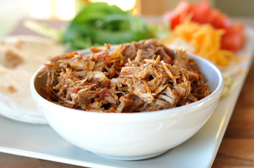 1.Cut the roast into 3-4 large chunks. Season the pork generously with salt and pepper on all sides. In a large heavy pot, the oil over medium heat until the oil is shimmering and hot. Add the pork, being careful not to crowd the pot (brown the pork in shifts, if needed). Brown the pork on all sides until golden and well-browned, about 30 seconds to a minute on each side. Leave the roast in the pot and add the onion and garlic. Cook for 1-2 minutes, stirring often. Place the pork and garlic and onions in the slow cooker (read below for oven-roasting method). Stir in the rest of the ingredients to the slow cooker. Cover and cook on low for 8-9 hours. After the roast has cooked for the allotted time, remove the roast. Shred it into bite-size pieces and set aside, covered with foil to keep warm. Pour the remaining liquid and ingredients from the slow cooker into a large saucepan. Bring the mixture to a boil on the stove, and simmer vigoriously over medium-low or medium heat for 20-30 minutes, stirring often to prevent sticking or burning, until the mixture considerably reduced and thickened. Add the pork roast and sauce back to the slow cooker. Stir to coat the pork with the sauce. Turn the crockpot to low or high and allow the pork to heat through again. Serve with warm tortillas and desired toppings, such as sour cream, cheese, avocados, lettuce, tomatoes.