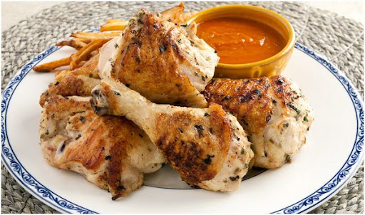 For the marinade: In a large bowl, add garlic, piri piri sauce, olive oil, oregano, parsley, rosemary, salt, pepper and wine. Mix to combine. Add chicken pieces and toss to combine. Cover or transfer to a large re-sealable bag. Marinate chicken in fridge, for at least 2 hours but up to 24 hours.