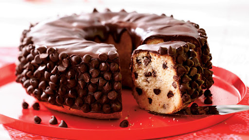 This moist yellow cake packs a triple helping of chocolate chips. Bittersweet chocolate chips have a higher cocoa content and less sugar than semisweet chips, resulting in an extra-chocolaty glaze; look for the Ghirardelli brand.