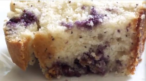 Preheat the oven to 350 degrees F. Brush 5 mini loaf pans (about 5 by 3 inches each) with vegetable oil. Whisk the flour, baking powder, sugar and salt in a large bowl. Beat the milk, 1 1/3 cups vegetable oil, the eggs, poppy seeds, and almond and vanilla extracts in a stand mixer fitted with the paddle attachment on medium speed until combined. Gradually beat in the flour mixture until well combined. Fold the blueberries into the batter with a rubber spatula.