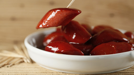 Combine all ingredients except hot dogs in a medium-size, oven-safe pan. Bring to a simmer until well-combined and slightly thickened. Add hot dogs into the bourbon mixture. Cover place in 250°F oven or in a slow cooker on low for 1 hour.