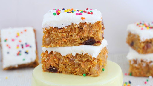 5 Spread cream cheese frosting over cooled bars. Cut into 4 rows by 3 rows or 4 rows by 4 rows.