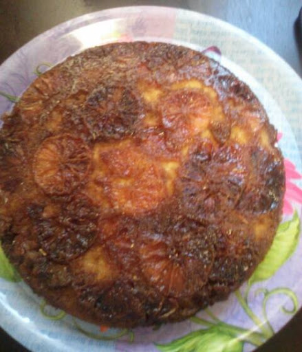 Preheat the oven to 375. In a 10-inch cast iron skillet melt the butter over medium heat. Add the brown sugar and cardamom and stir until the sugar has dissolved. Remove the pan from the heat. Working from the outside in, arrange the orange slices in one even layer on top of the caramelized sugar. Set aside while you prepare the cake batter. In a medium bowl whisk together the flours, baking powder, baking soda, salt, and cardamom. In large bowl use a hand mixer on medium high to cream together the butter and sugar until light and fluffy, about 5 minutes or so. Add the eggs one at a time beating after each addition. Add the buttermilk, orange zest, and vanilla and mix to combine. Add the dry ingredients in thirds, stirring until everything is combined and there are no dry spots. Pour the cake batter over the fruit in the skillet. Place the skillet in the oven and bake until the top is golden and a toothpick inserted in the center comes out clean, about 30-35 minutes. When it is done, leave it in the skillet to cool a bit, about 15 minutes. Run a knife around the inside of the skillet to loosen any stuck places. Pace a platter over the skillet and invert. The cake should fall out of the skillet and onto the platter easily, but allow it to sit for at least five minutes to allow gravity to release any stuck spots. Gently lift off the skillet. Whip together heavy cream, sugar and cardamom on high until fluffy. Serve with whipped cream.