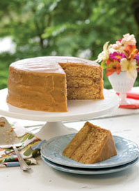 7.Spread Linda’s Cooked Caramel Icing between layers, on top, and around sides of cake, working quickly†. Store at room temperature in an airtight container for up to 1 week.