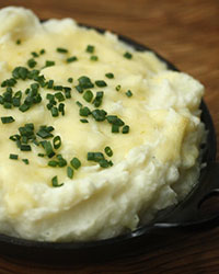 Transfer the potatoes to a 3-quart ceramic baking dish and sprinkle the cheese over the top. Bake for 15 minutes, until the cheese is melted and beginning to brown. Garnish with the scallions and serve warm.