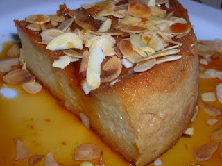 Enfriar y servir con poco de cajeta diluida con leche como espejo y cubrir con un poco de almendras fileteadas y doradas en mantequilla.