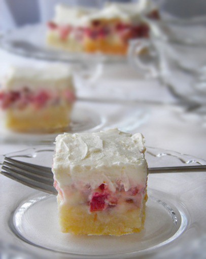 4. Prepare topping by beating cream cheese, sugar, and vanilla until smooth then fold in the whipped cream. Spread the topping over the top and cover and chill. Cut into bars before serving. Store bars in the refrigerator.