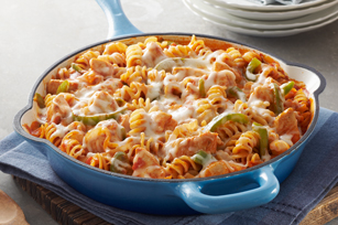 This recipe was delicious. I added some shrimp along with the chicken and seasoned it with garlic salt and pepper. I used a mushroom and green pepper pasta sauce.