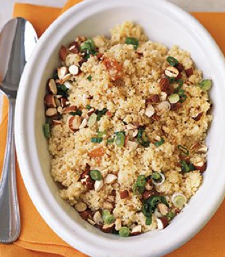 Fluff the couscous with a fork and toss with the scallions, almonds, and vinaigrette.