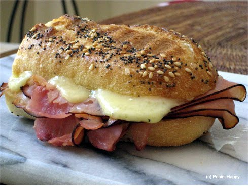 Preheat panini grill to medium-high heat (375 degrees). Split each baguette segment in half lengthwise, forming top and bottom halves. For each sandwich: Drizzle honey inside each baguette half. On the bottom half, layer 3 slices of ham and several slices of cheese. Place the top baguette half on top and press down gently to form the sandwich. Grill each sandwich for 9-10 minutes (you may be able to fit them all on the grill at the same time, depending on the size of your grill) until the cheese has melted. Serve immediately and enjoy!