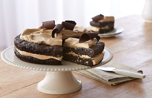 3. Bake 20 to 25 minutes or until wooden pick inserted in center comes out clean. Do not overbake. Cool 5 minutes; remove from pans to wire racks. Carefully peel off paper. Cool completely. Spread CREAMY COFFEE FILLING between layers, over top and sides of cake. Garnish with chocolate curls, if desired. Refrigerate 1 hour or longer before serving. Cover leftover cake; store in refrigerator. 10 to 12 servings.